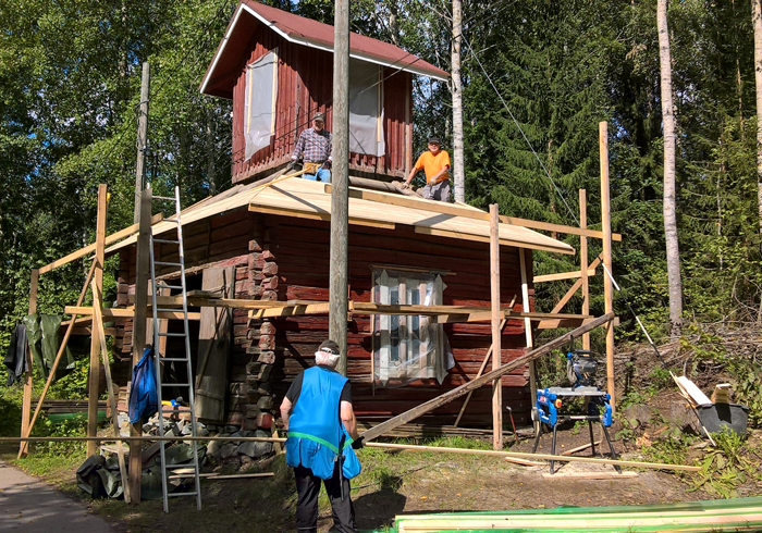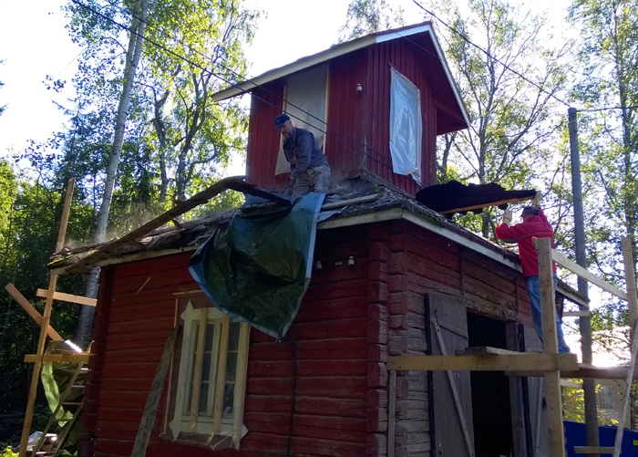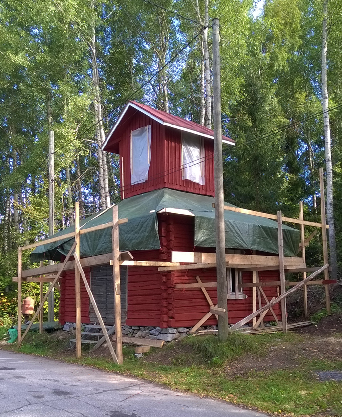Seuraavaksi tehtiin kattoremontti, jonka alkajaisiksi sieltä poistettiin vanha ja raskas sireeni. Ylä- ja alakaton aluslaudoitus ja kattohuovat uusittiin. Työ tehtiin huolella ja hyvien telineiden turvaamana. Rakennelma jouduttiin moneen kertaan sateen varalta peittämään pressuilla työ edetessä Järvisen Pertin ja Virtasen Anteron hoitaessa pääosan asennuksista.