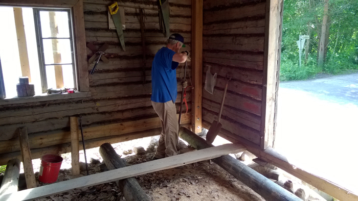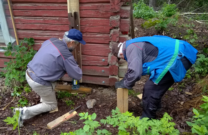 tehty toimenpide oli sen nostaminen maantasalta ylemmäksi. Rakennusta korotettiin tunkeilla ja perustusta kasvatettiin lisäämällä kiviä alemman hirsikerran tueksi. Tässä yhteydessä meinasi käydä köpelösti kun tunkatessa alkoivat seinät levetä. Edellisen remontin yhteydessä vaihdetut hirret olivat tapittamatta eivätkä irrallisina pysyneet toisissaan kiinni. Asia ratkaistiin lisäämällä kopin sisänurkkiin lankut, jotka metrijengalla ja muttereilla isojen prikkojen kanssa kiristettiin alimpiin hirsiin ja kiinteään seinään kiinni.