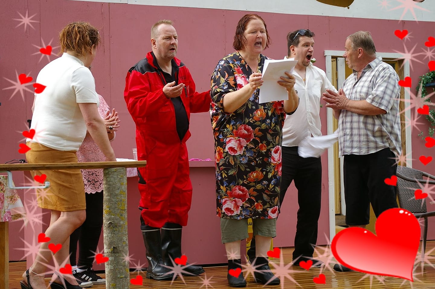 Edessä: Elisa Syrjänen, Meri Koskinen, ohjaaja Petri Liski, Emmi Nieminen, Tiia Ketola, Valtteri Ketola